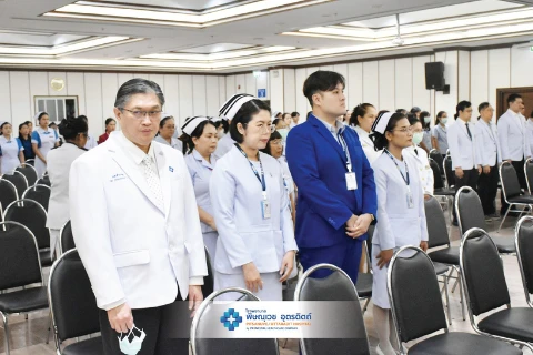 พญ.ศิริลักษณ์ แก้วอุ่นเรือน ผู้อำนวยการโรงพยาบาล, นพ.ชำนาญ หล่อเมืองทอง ประธานองค์กรแพทย์ พร้อมด้วย คุณปวีณา ยิ่งนิยม ผู้จัดการฝ่ายปฏิบัติการพร้อมด้วยตัวแทนเจ้าหน้าที่โรงพยาบาลพิษณุเวช อุตรดิตถ์ ได้รับเกียรติเข้าร่วมพิธีวางพวงมาลาและถวายราชสดุดี เนื่องใน "วันมหิดล" ณ ห้องประชุมมเหสักข์ ชั้น 7 โรงพยบาลอุตรดิตถ์