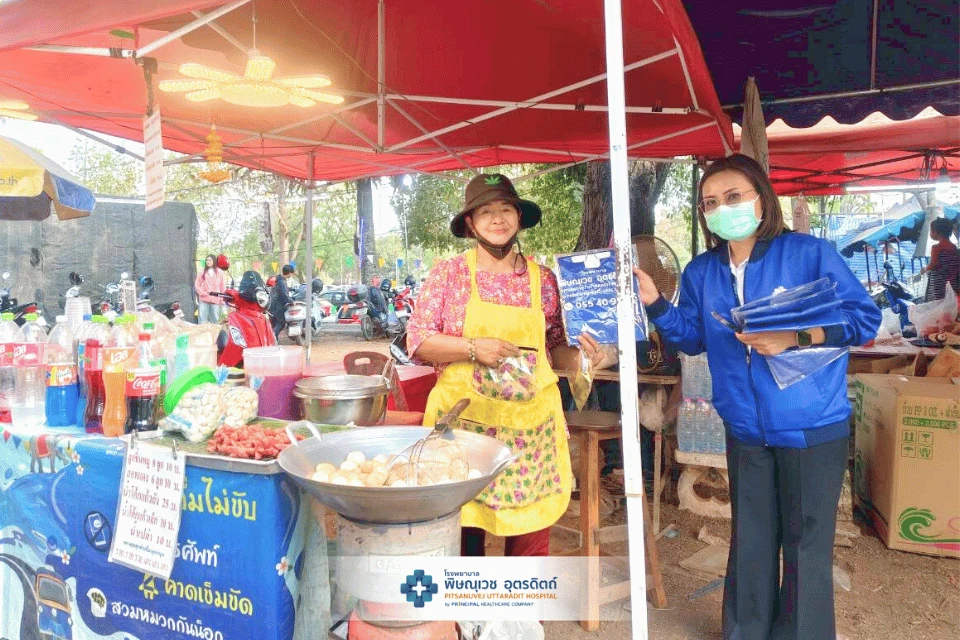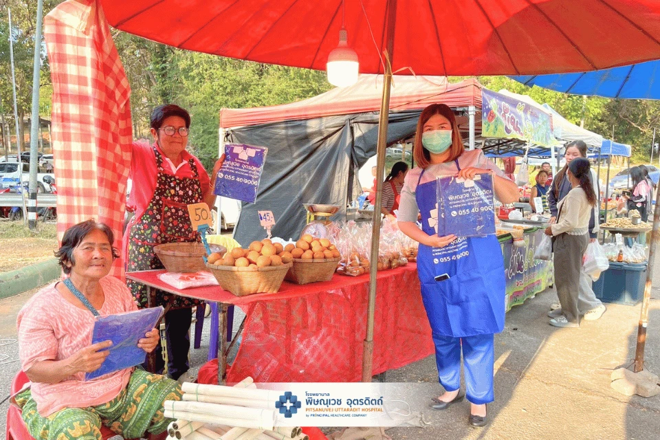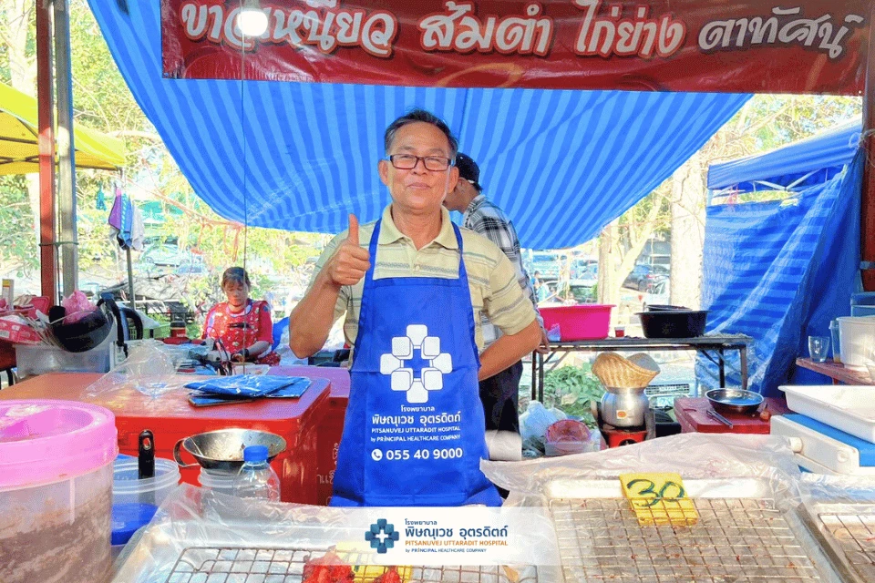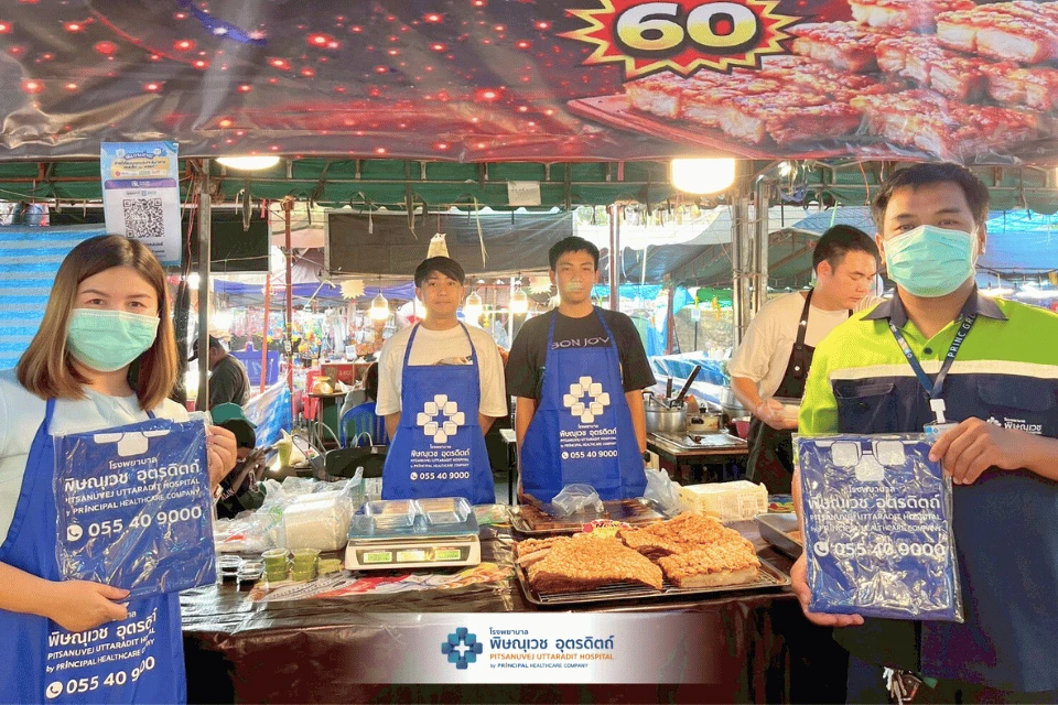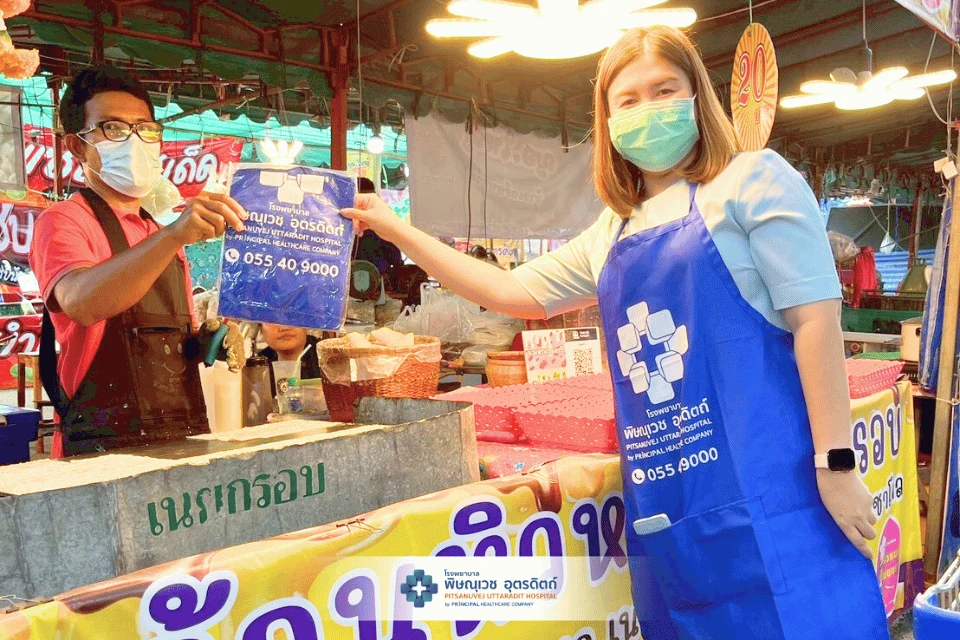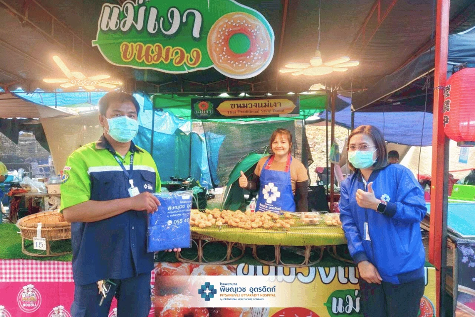 มอบความห่วงใย ยกระดับสุขอนามัยท้องถิ่น เพื่อเป็นการสนับสนุนผู้ประกอบการรายย่อยและสร้างมาตรฐานความสะอาด (Hygiene) ภายในงาน ทางโรงพยาบาลได้นำ "ผ้ากันเปื้อน" คุณภาพดี ไปมอบให้กับพ่อค้าและแม่ค้าที่มาออกร้านจำหน่ายสินค้าภายในงาน โดยบรรยากาศเต็มไปด้วยความอบอุ่นและรอยยิ้มของผู้รับ ซึ่งกิจกรรมนี้สะท้อนถึงความตั้งใจของเครือ PRINC Group ที่มุ่งมั่นดูแลชุมชนและสังคมให้เติบโตไปพร้อมกัน
