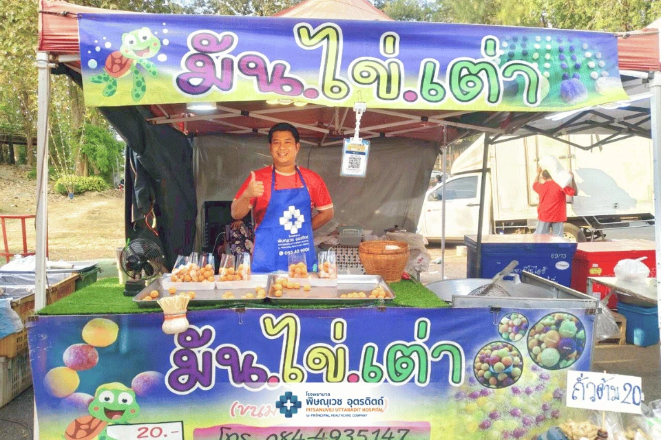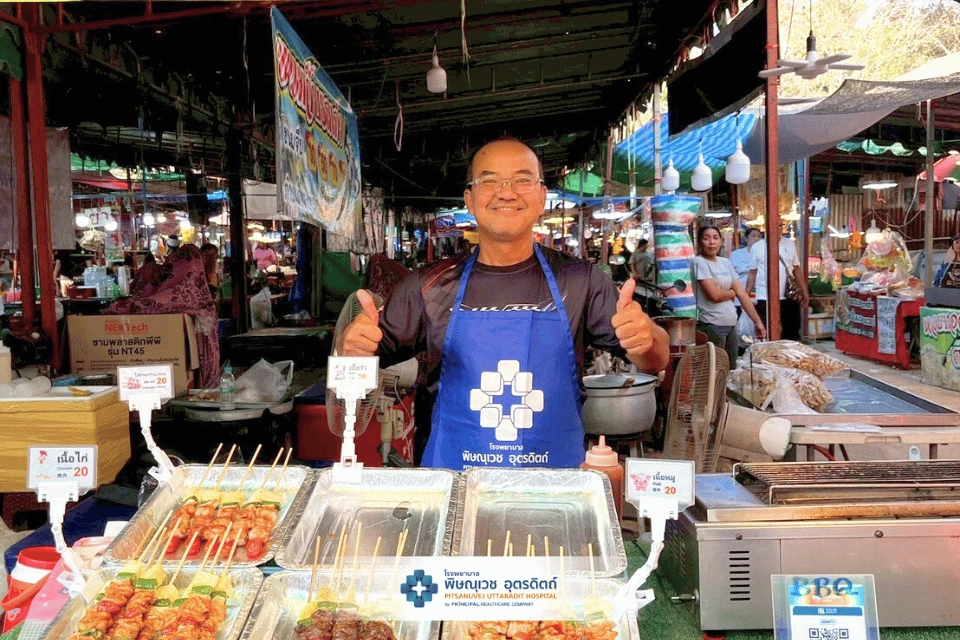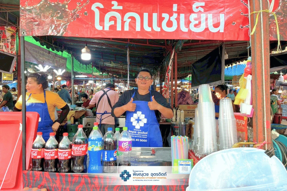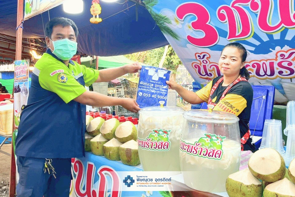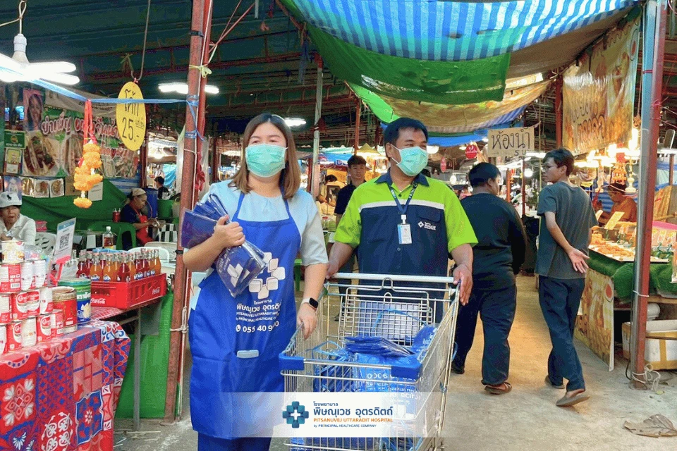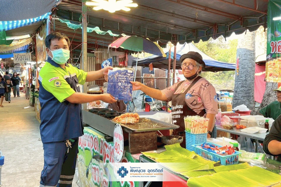 มอบความห่วงใย ยกระดับสุขอนามัยท้องถิ่น เพื่อเป็นการสนับสนุนผู้ประกอบการรายย่อยและสร้างมาตรฐานความสะอาด (Hygiene) ภายในงาน ทางโรงพยาบาลได้นำ "ผ้ากันเปื้อน" คุณภาพดี ไปมอบให้กับพ่อค้าและแม่ค้าที่มาออกร้านจำหน่ายสินค้าภายในงาน โดยบรรยากาศเต็มไปด้วยความอบอุ่นและรอยยิ้มของผู้รับ ซึ่งกิจกรรมนี้สะท้อนถึงความตั้งใจของเครือ PRINC Group ที่มุ่งมั่นดูแลชุมชนและสังคมให้เติบโตไปพร้อมกัน