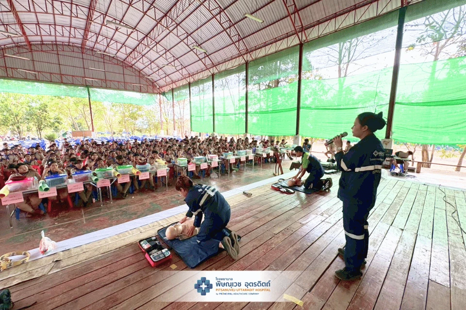 สร้างเกราะความปลอดภัย! รพ.พิษณุเวช อุตรดิตถ์ ติวเข้ม “ทักษะกู้ชีพ-ปฐมพยาบาล” ให้น้องๆ ลูกเสือ-ยุวกาชาด รร.ตรอนตรีสินธุ์