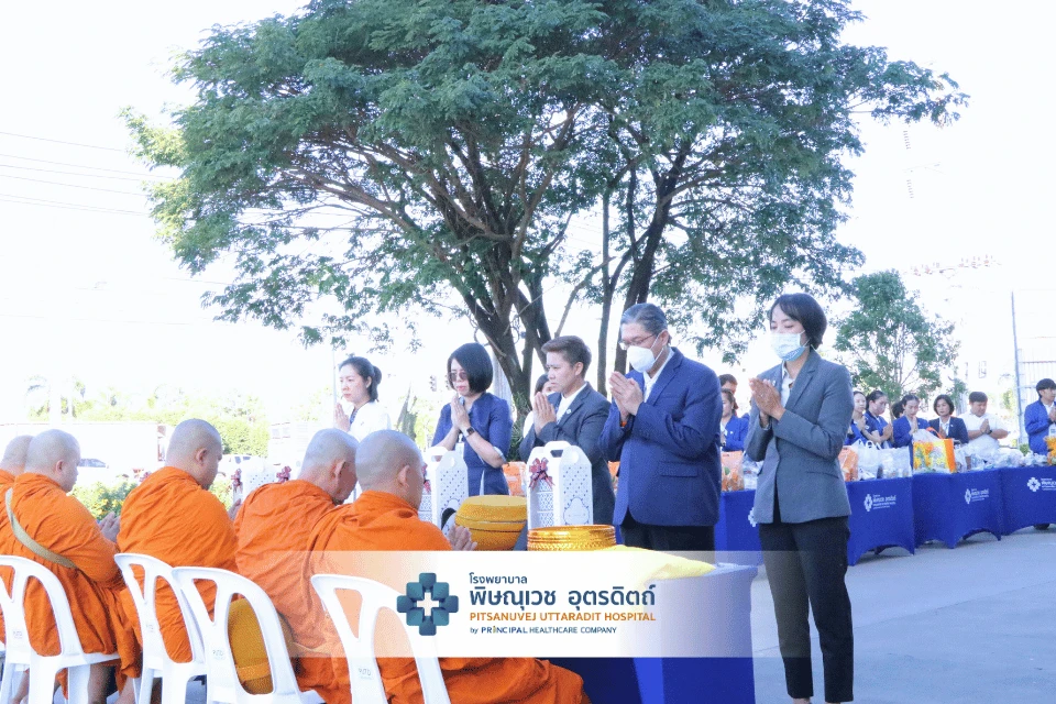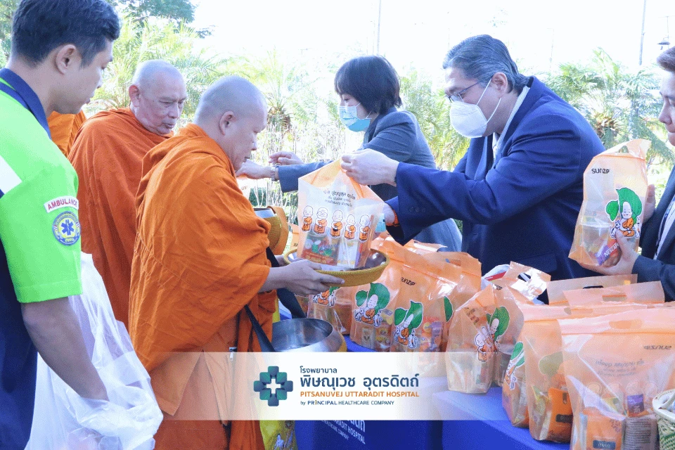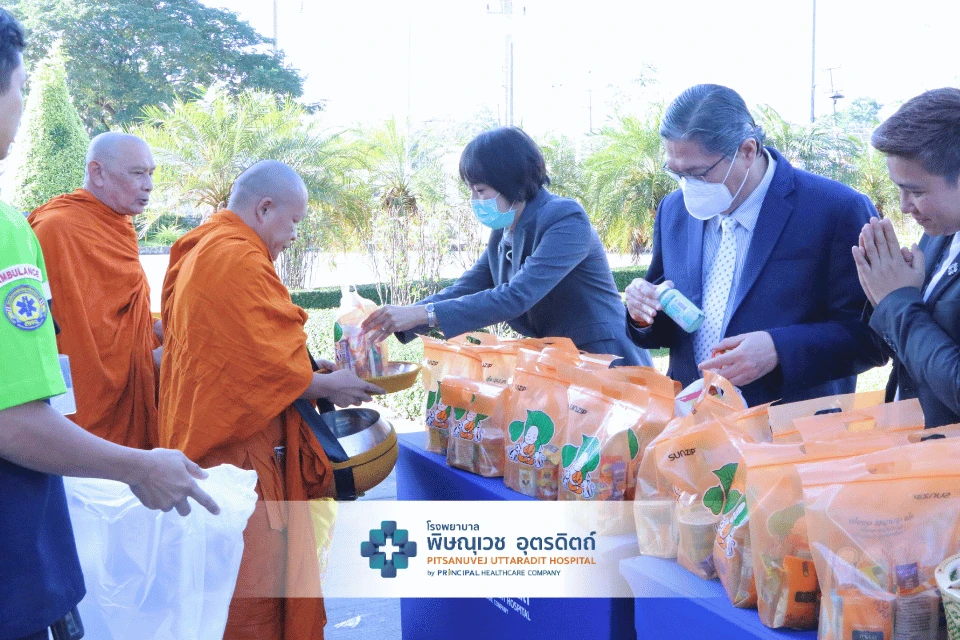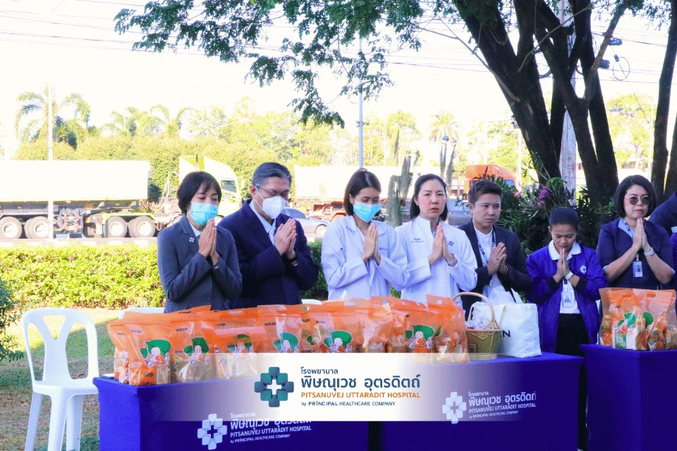 เมื่อวันที่ 5 มกราคม 2569 พญ.ศิริลักษณ์ แก้วอุ่นเรือน ผู้อำนวยการโรงพยาบาลพิษณุเวช อุตรดิตถ์ (ในเครือ PRINC Group) นำคณะผู้บริหาร แพทย์ และเจ้าหน้าที่ ร่วมพิธีทำบุญตักบาตรข้าวสารอาหารแห้งแด่พระสงฆ์ 5 รูป เนื่องในวาระดิถีขึ้นปีใหม่
