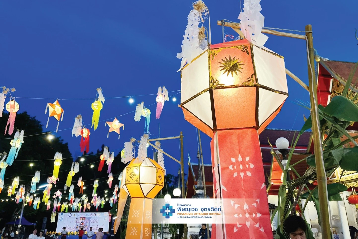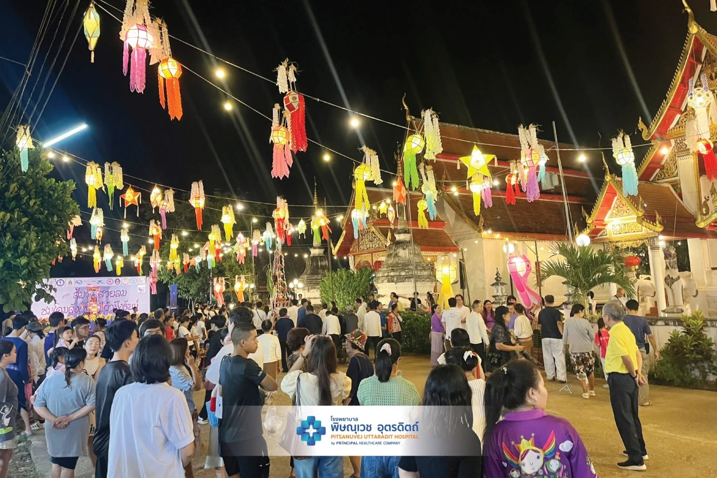 โรงพยาบาลพิษณุเวช อุตรดิตถ์ ในเครือ PRINC Group ตระหนักถึงความสำคัญของการสืบสานวัฒนธรรมและประเพณีท้องถิ่น จึงได้เข้าร่วมพิธีเปิดงานเทศกาล "สัมผัสสายลม ชมโคมลังกา ห่มผ้าฟังธัมม์" ครั้งที่ 3 อย่างเป็นทางการ ณ วัดท้องลับแล อำเภอลับแล จังหวัดอุตรดิตถ์