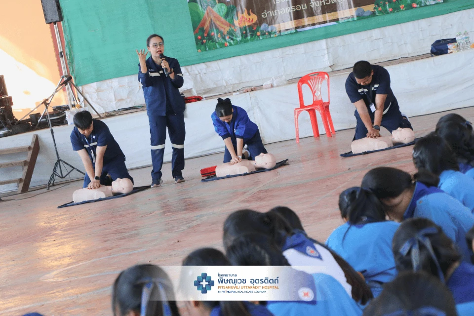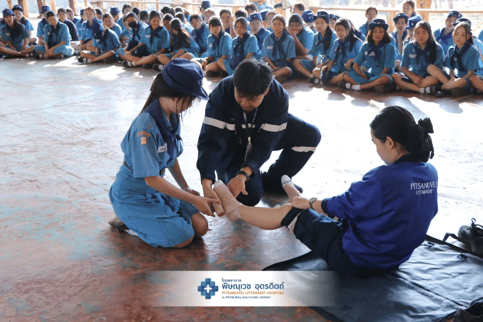 สร้างเกราะความปลอดภัย! รพ.พิษณุเวช อุตรดิตถ์ ติวเข้ม “ทักษะกู้ชีพ-ปฐมพยาบาล” ให้น้องๆ ลูกเสือ-ยุวกาชาด รร.ตรอนตรีสินธุ์
