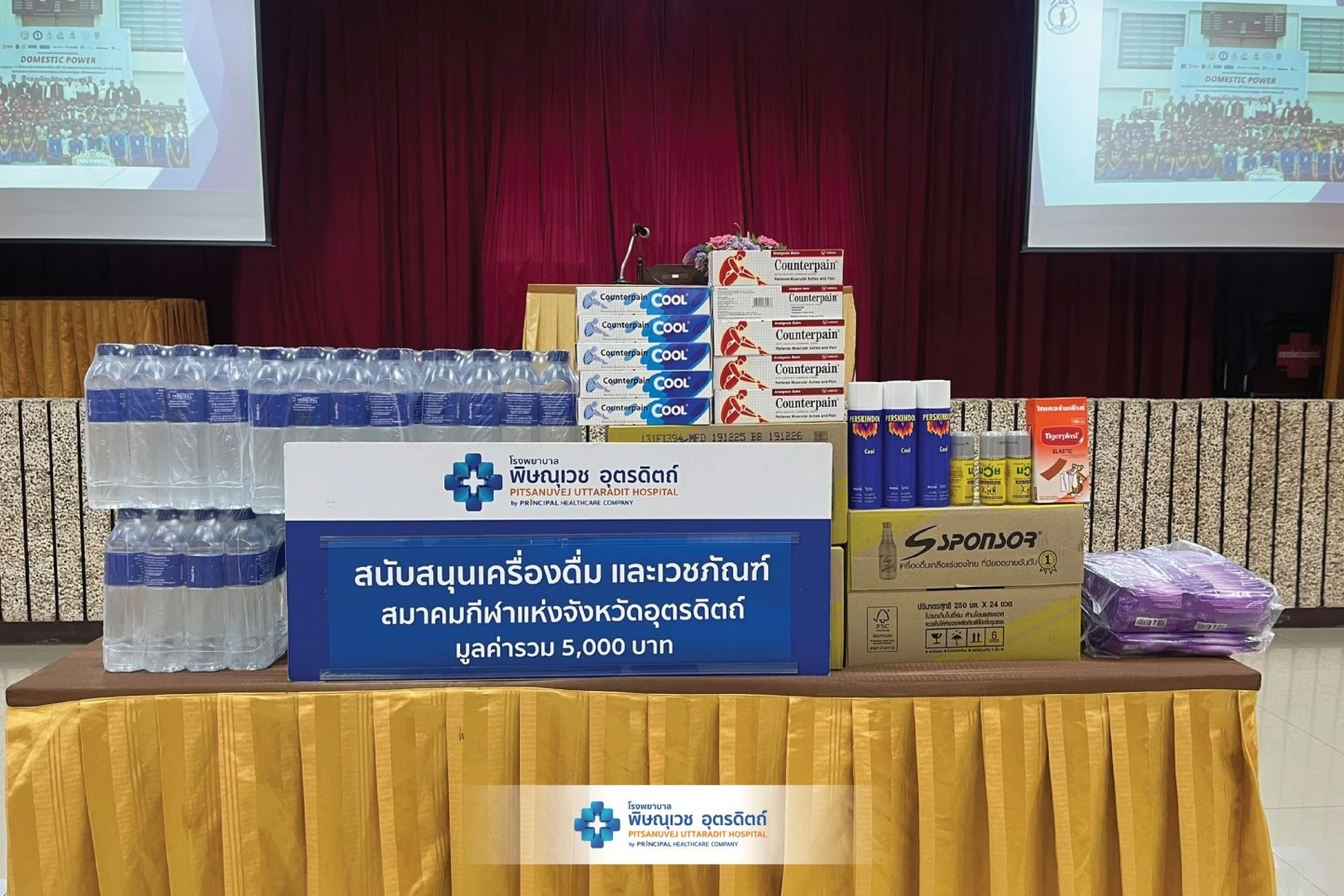 ด้วยความตระหนักถึงความสำคัญของ "สุขภาพ" ที่เป็นพื้นฐานสำคัญของนักกีฬา โรงพยาบาลพิษณุเวช อุตรดิตถ์ จึงได้มอบการสนับสนุน เครื่องดื่มเพิ่มความสดชื่นและชุดเวชภัณฑ์ที่จำเป็น ให้กับทีมนักกีฬาและเจ้าหน้าที่ เพื่อนำไปใช้ดูแลรักษาสุขภาพเบื้องต้นระหว่างการแข่งขัน มุ่งหวังให้นักกีฬาทุกคนมีความพร้อมสูงสุดในการคว้าชัยชนะและสร้างชื่อเสียงให้กับจังหวัดอุตรดิตถ์